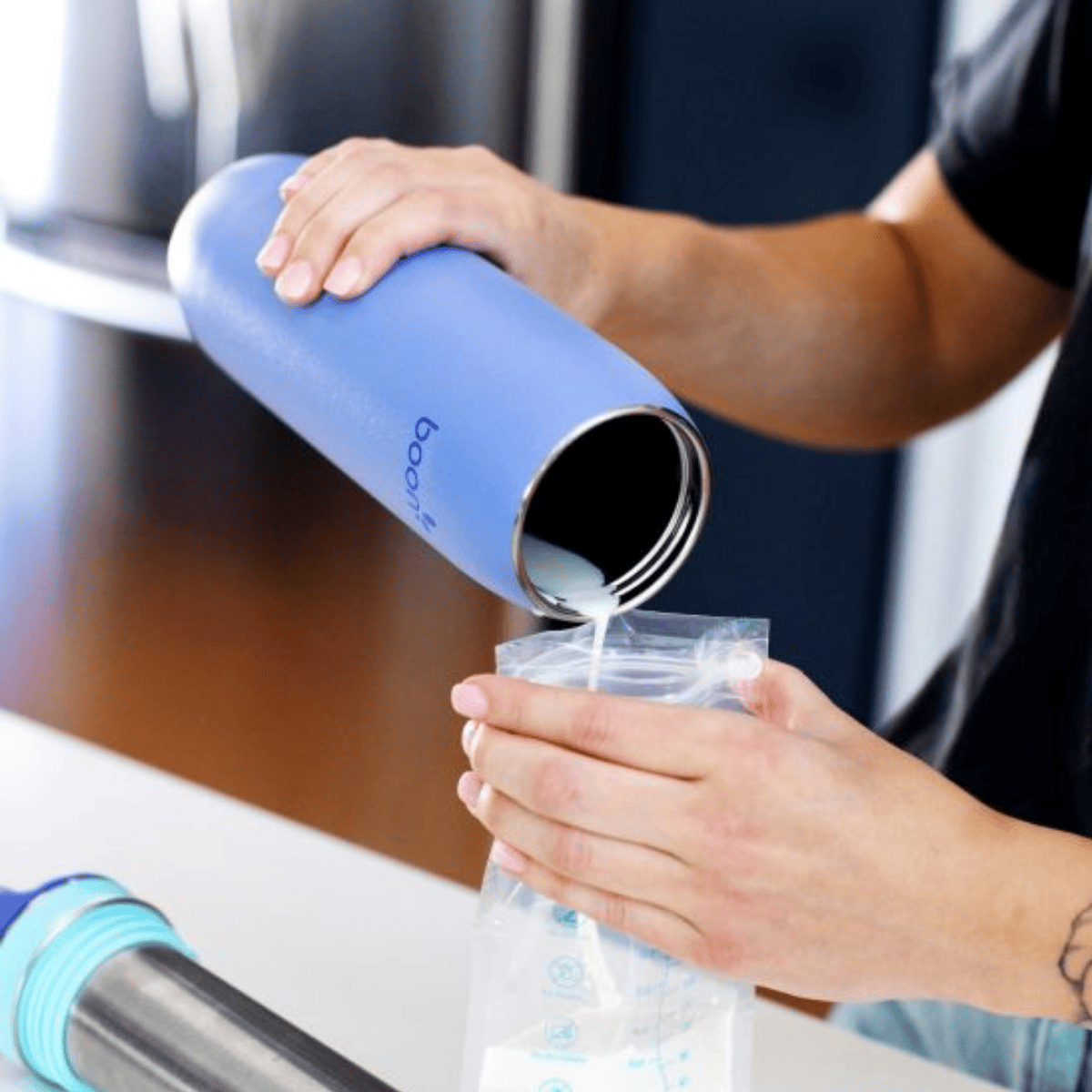 Simply fill FROSH with ice water and pour your milk into the double-wall vacuum-sealed stainless steel. It’s adaptable and can hold 295, 414 or 709ml of breast milk.