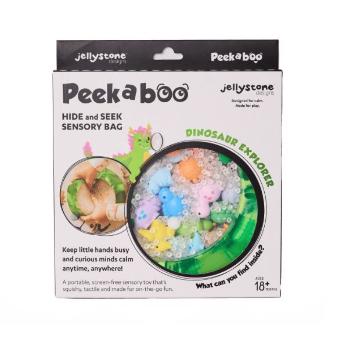 Discover the squishy & tactile portable sensory toy! The Peekaboo Sensory Bag is filled with weighted beads and fun themed figurines for little ones to discover. All the sensory feedback they need without the mess! It is perfectly designed to engage sight, touch and sound while helping to calm and relax. The Peekaboo Bag comes totally sealed & safe for little ones to explore.