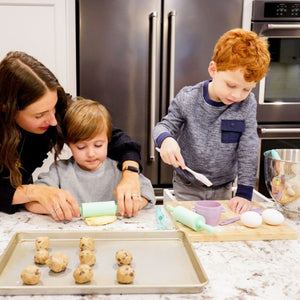A great activity for you and your young ones to enjoy cooking and baking delicious foods together! The set is made from a soft food grade silicone with a durable stainless steel core, sized perfectly for little hands.